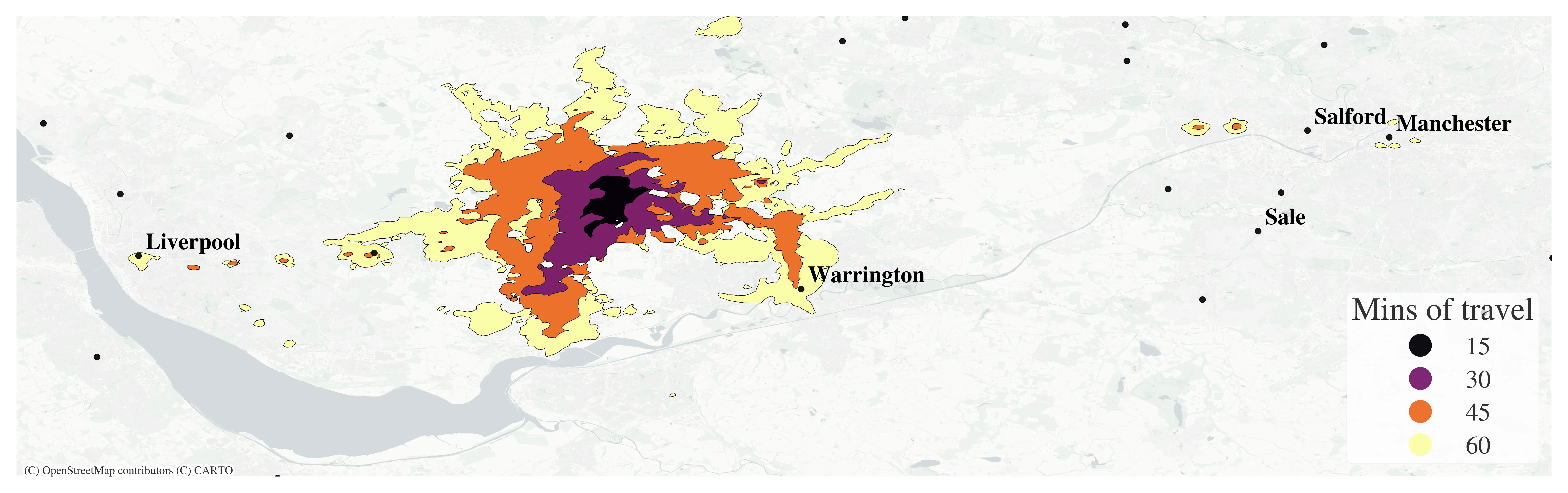 Oh yeah, and I managed to get an isochrone map of the commute from St Helens in. If you want to know why that’s relevant, you’ll just have to read the chapter!